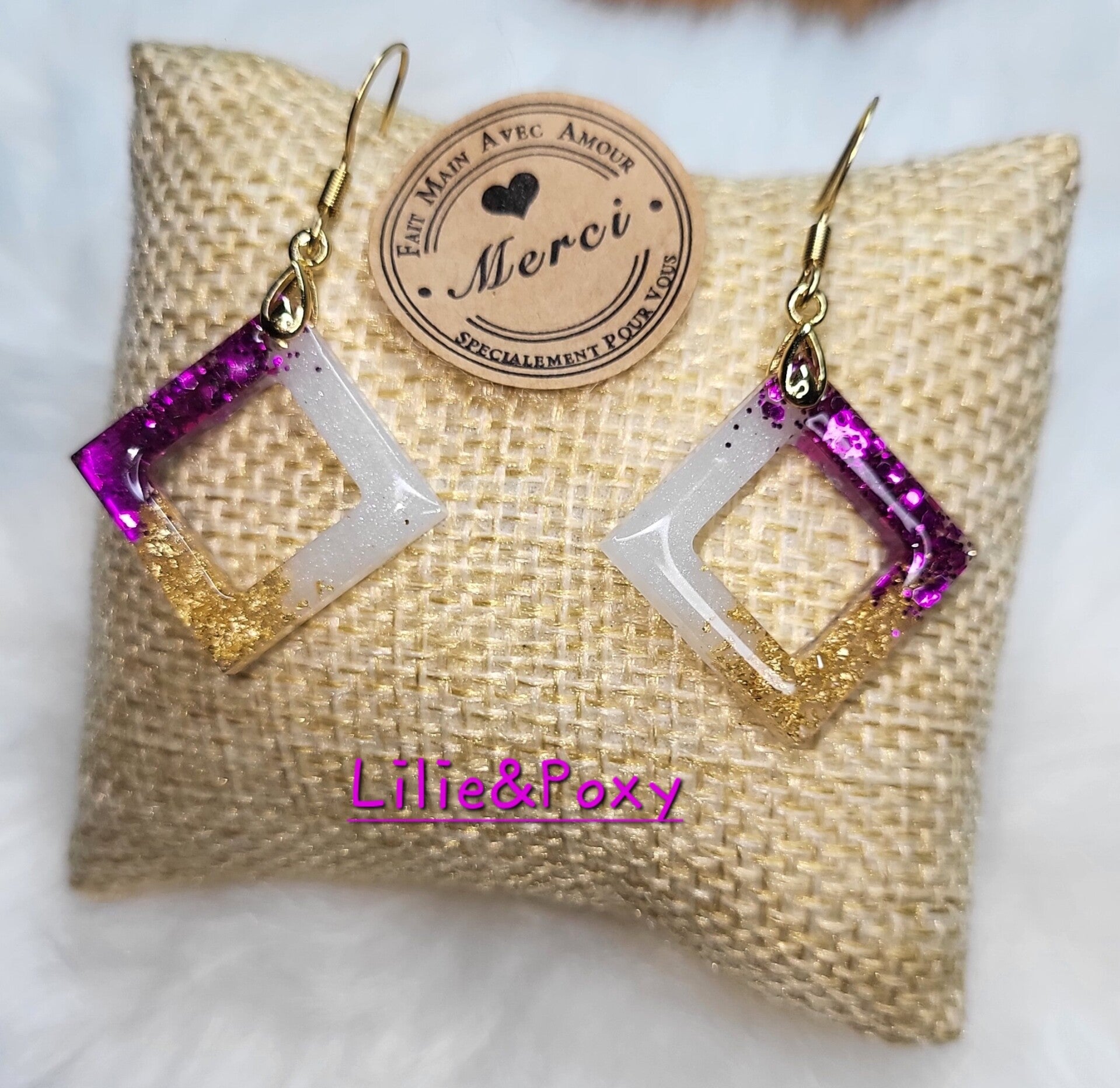 Laissez-vous séduire par la collection de boucles d'oreilles unique en résine "Précieuses Violetta", confectionnées à la main avec amour.